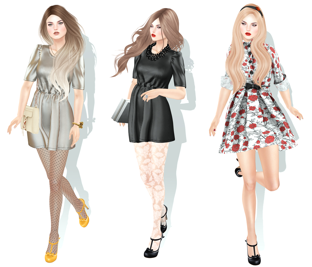 …but often, the shoes help make the dress. At least these shoes do 😀 I was so happy when I logged in tonight to find The Secret Store released new T-strap heels, including ones for Maitreya Lara feet \o/. There are lots of colors available including brights, neutrals and pastels. I didn’t have time to snap them all, so here’s a few quick looks I put together. You can also pick up new polka dot and lace tights in black and white as well, both on system layers, and appliers as shown below.