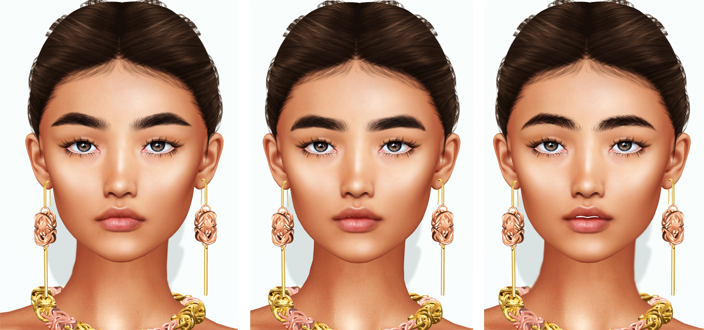 I have mentioned several times – ok, numerous obsessive times – how important eyebrows are to me. In both lives. In SL, I won’t even demo a skin unless I like the look of the brows in the ad – even if it comes with a no-brow version! This new BoM skin from Lowen has lovely warm, but still dark, brows that are super pretty to me. I’m also wearing blush and lip gloss from Glam Affair to warm up the whole skin.
