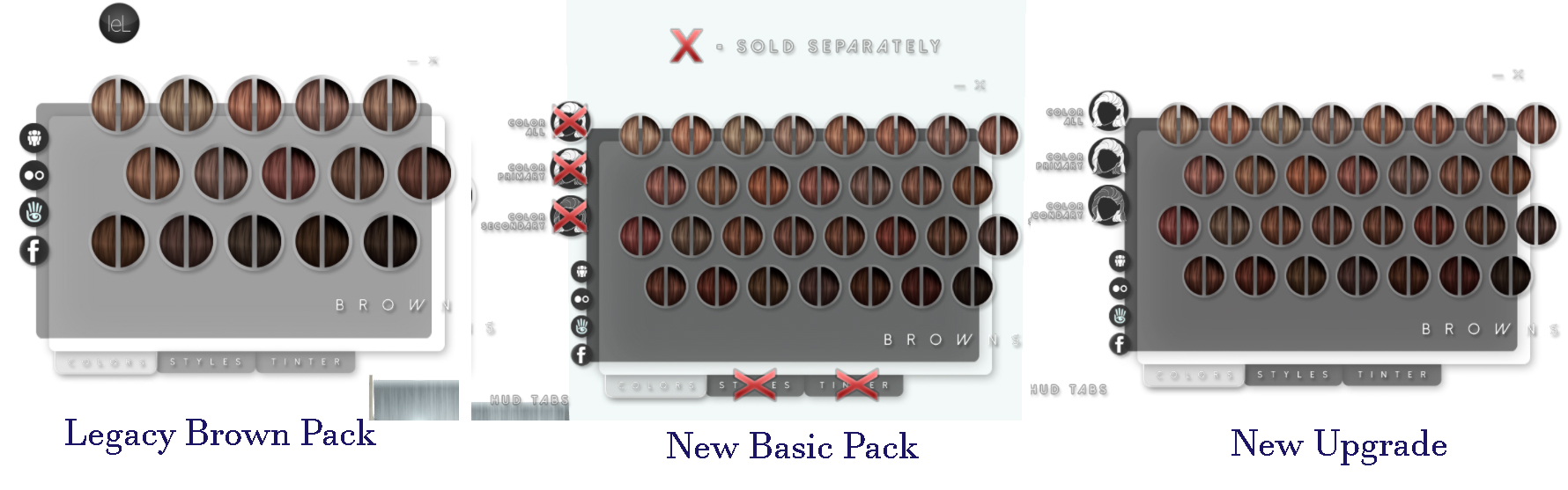 While I could do without the ~37% price hike from one basic pack to the new one (although yes, it does have lots more colors – most of which I won’t use), I do appreciate the ability to buy an add-on upgrade if I decide I want the styles after all. However, anyway you slice it, you’ll now be paying ~$600L for what amounts to a few style options that were standard before the shift.