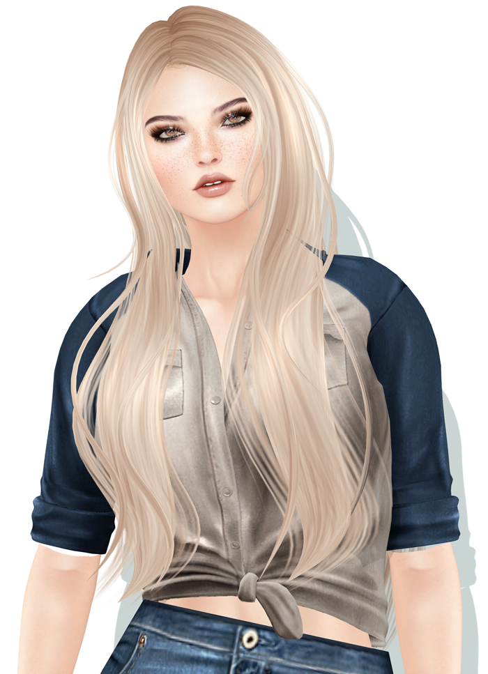 Deer Co. is a new brand, launched I think by the same avatars behind Overhigh (OVH), which I have blogged a lot because the texture work is always perfection. Same goes for this brand, which seems more whimsical and young. There are only a few items available today but I am quite sure more is coming. I’m also wearing new hair from Magika called “Restless” and more freckles!!!