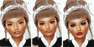 My skin is from Mai Bilavio for fiore, available at Tres Chic. It has a few different eye/lip makeup options, which is nice, but it does not come with body appliers (or apparently, the “apply ears” option, so I used the fiore body 30 tone here (which might be the same tbh – not sure), and matched my ears using a separate fiore applier).