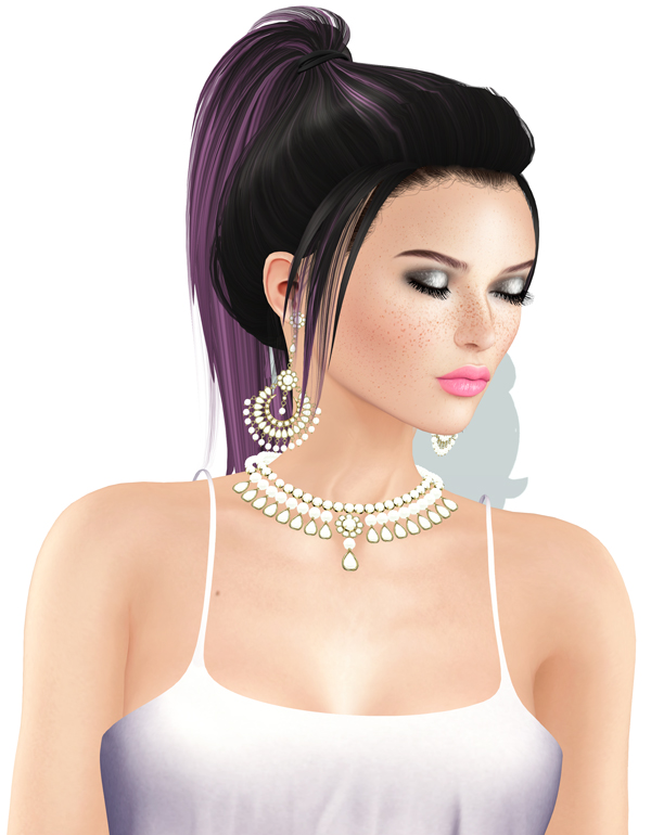 My jewels are new from Maxi Gossamer, also at Uber. And another new release today from Elikatira called Aubrey. A high pony with upswept bangs. Perfect for summer.