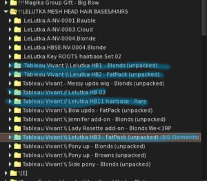 I love the new Hairbases for Lelutka heads from Tableau Vivant. Such great styles that I didn’t even want to add any attachments because they are interesting and beautiful as they are. Maximum impact. However, the numbering for the Tableau Vivant hairbases is confusing. If you have some of the earlier releases, they are numbered like, “Lelutka HB11” for example – and now, they’re renumbering them as “Lelutka HB 03” when there is already a “Lelutka HB3.” As a blogger, I like to be able to quickly find the things I need, because I reuse/restyle older content all the time. This doesn’t help – so a texture of the styles included (not the tones) would be helpful in each pack.