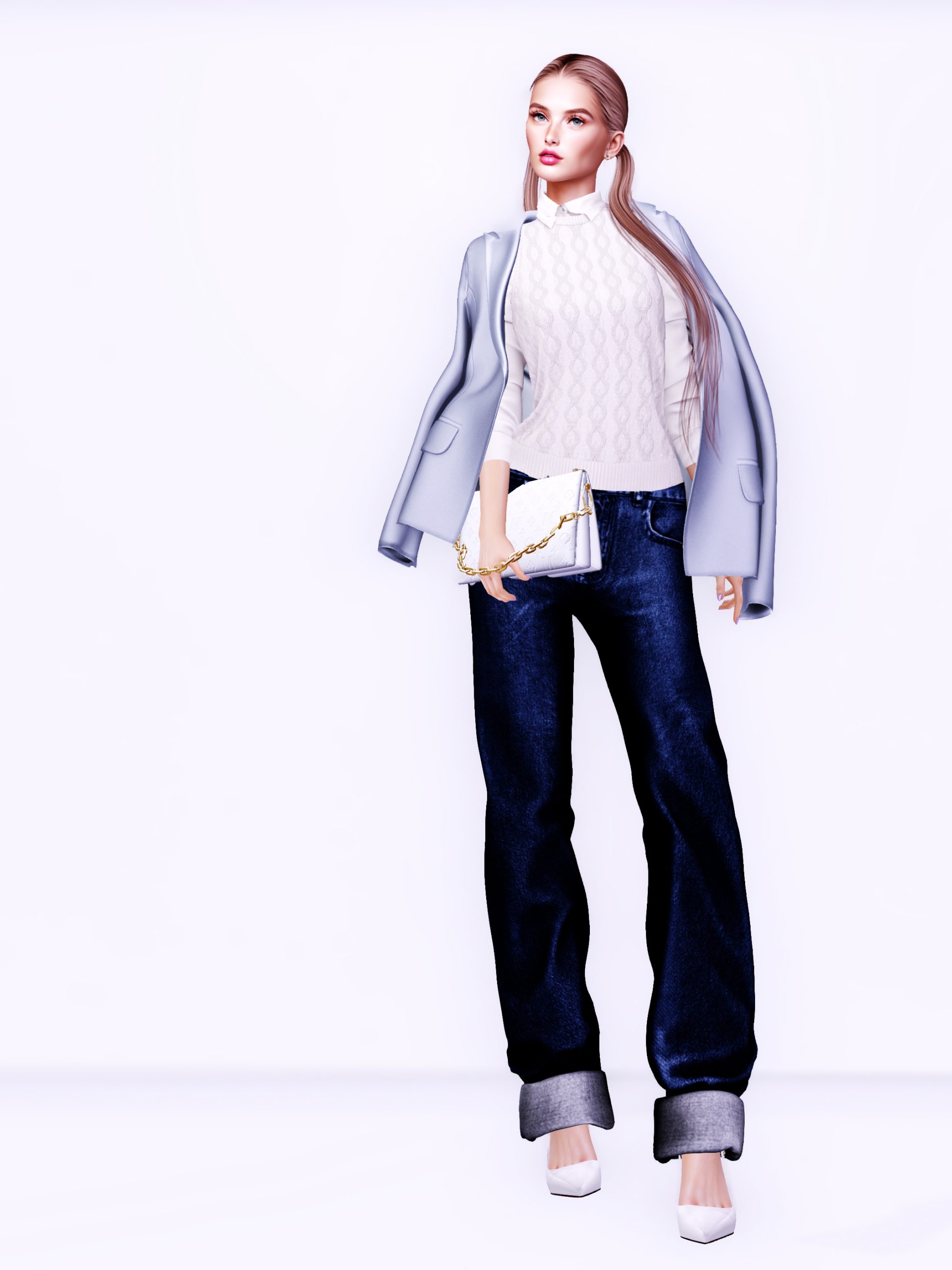 My avatar is in safe mode today. I am not sure why I ended up dressing my avatar exactly as her RL typist most days but here we are. Blazers, jeans and heels (or ballet flats more recently) have long been my go-to IRL. It’s very safe mode for me.