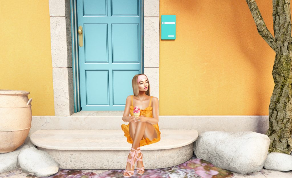 This pretty background scene is from Minimal – a creator I previously only enjoyed jewelry from. But I have been – obviously – really enjoying creating looks with something other than a bare white background for the first time in a long while. Way back when I was blogging Last Call’s releases for Ginny, I often used to snap his amazing limited edition or holidays designs in beautiful sims across SL. Yes, this is not the same, but it’s been fun to play with.
