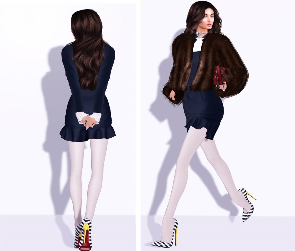 I added a winter “bear” jacket and a red suede clutch to set off my striped shoes with yellow and red accents. Details on my skin and the rest in the credits. Quick thanks to Truth for making hair in petite sizes that don’t stick out 3 feet from my avatar’s body!