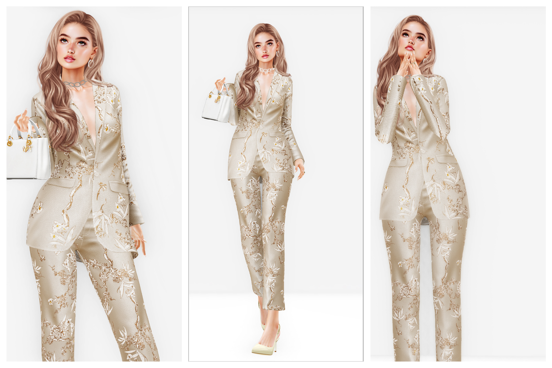 I can probably count on one hand the number of times in the last year I have been excited enough about a single release that I prioritized logging in specifically to check it out. This was one of those times. This brocade textured day suit by Zaara was calling my name, as if my avatar was the one going off to a Mother’s Day brunch and not her RL typist. It’s just beautiful – though I wish it had a longer trouser option too.