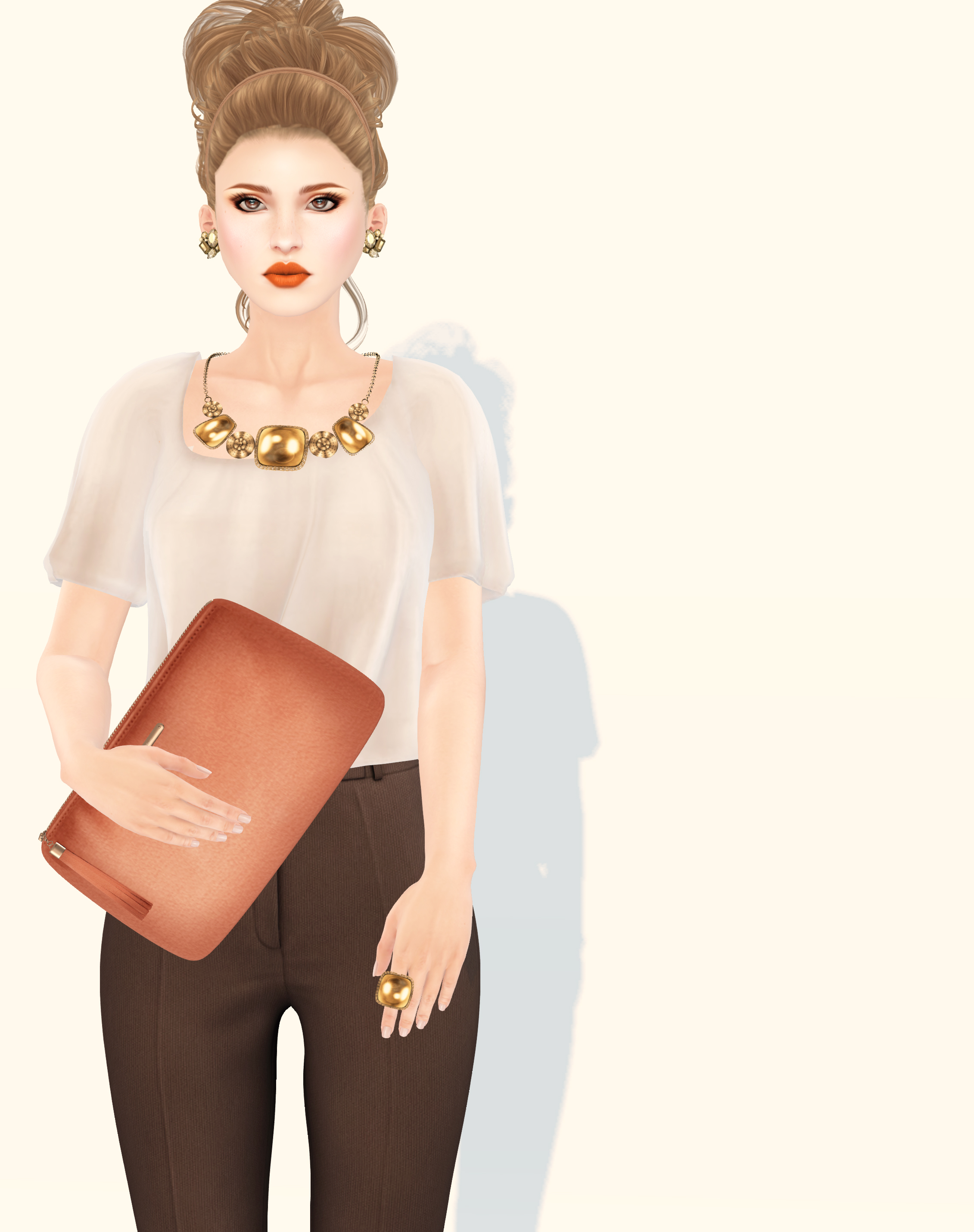 The sweet Maria clutch from Glam Affair comes in a range of neutrals and pastels, but does not come with a posed version. The high-waisted trousers from Bueno are very well done and super versatile (I also picked up the houndstooth pair which I will save for another day). The tunic is new and very pretty in bone from Coquet. The T-strap Polly shoes from Just Design come in both patent and leather options for all the major mesh bodies. And finally the hair, new from Damelsfly, was a bit annoying for me to fit and I didn’t actually get it 100% right. Also, the color options could be better for me. The equivalent of the variety pack was $450L and didn’t have the light and dark colors I wanted so I went for the dark blondes, hoping to find what was actually a lighter brown tone, which I quite liked in the end. It comes with numerous hairbase options and a hud for the hairband accessory as well.