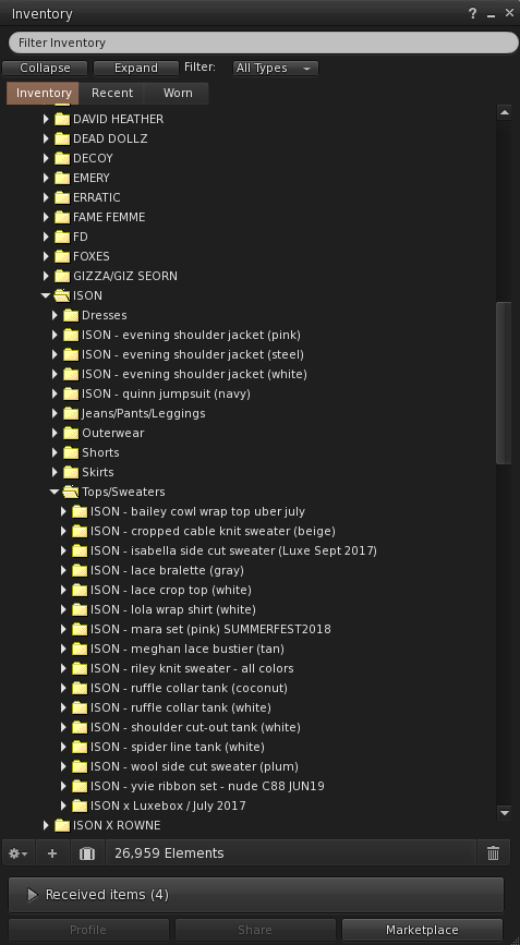 This look took some time to put together because I was determined not to wear a half-shirt or crop of any kind with this new skirt (that I fatpacked, ofc) from ISON. Good thing I organize my inventory by Creator and then Item Type, because I can scoot through (relatively speaking) and find what I am looking for much more quickly.